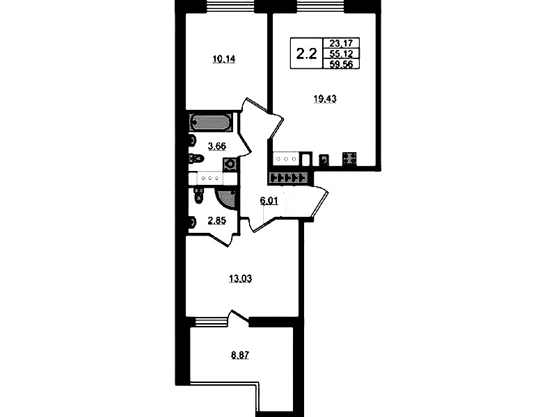 • Площадь55,12 м2