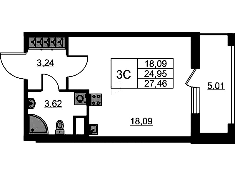 • Площадь24,95 м2