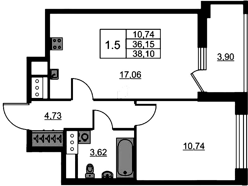 Однокомнатная квартира на 21-ом этаже 36,15 кв.м