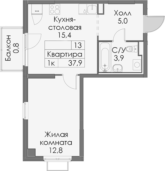 Однокомнатная квартира на 4-ом этаже 37,9 кв.м