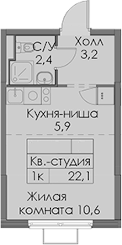 - Площадь22,1 м2