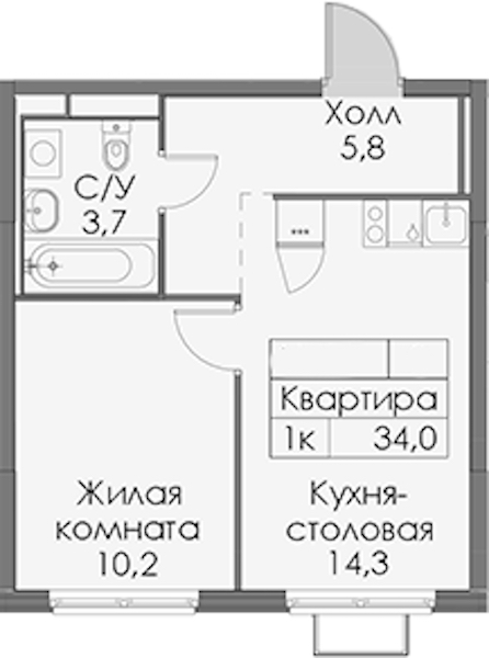 • Площадь кухни14,3 м2