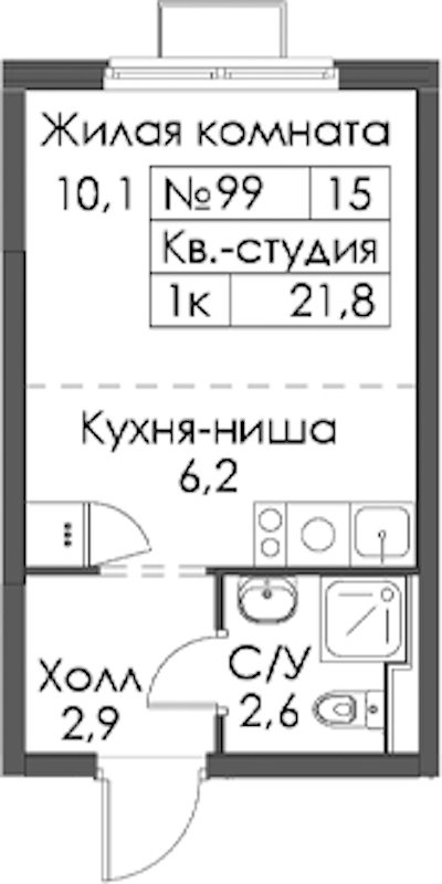 • Площадь21,8 м2