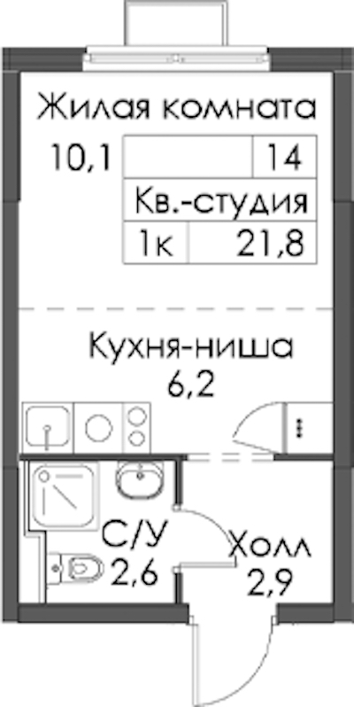 • Площадь21,8 м2