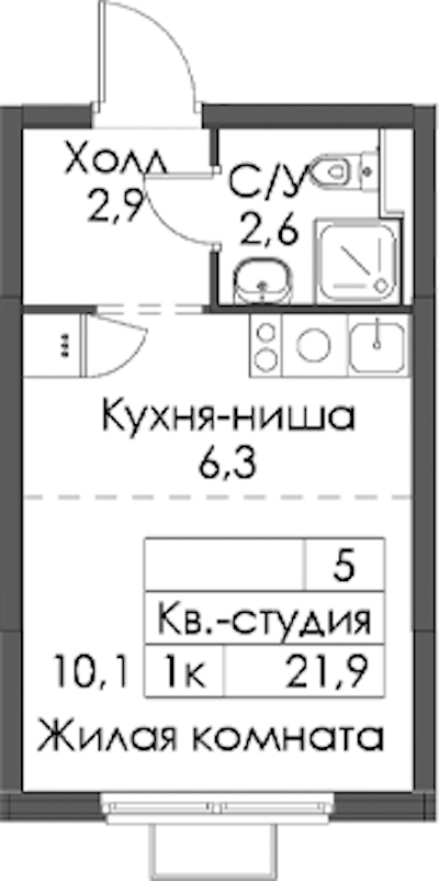 Квартира-студия на 8-ом этаже 21,9 кв.м