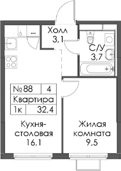 • Площадь32,4 м2