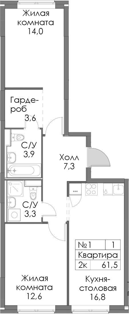 • Площадь61,5 м2