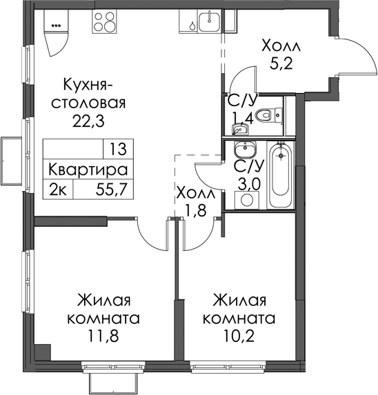 • Площадь55,7 м2