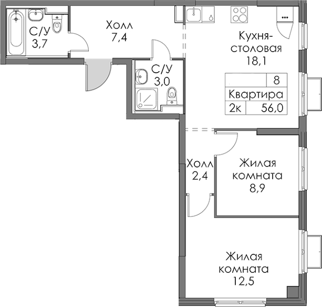 • Площадь56 м2
