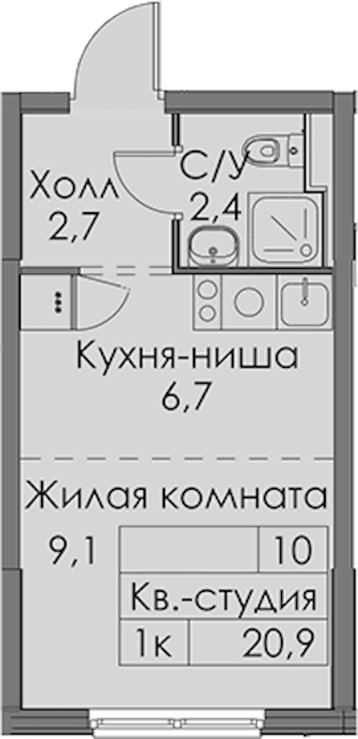 Квартира-студия на 6-ом этаже 20,9 кв.м
