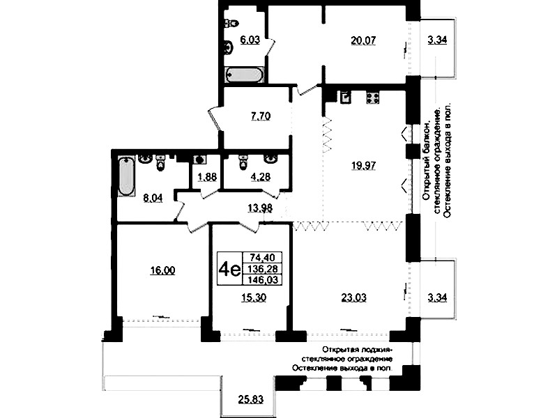 Четырёхкомнатная квартира на 4-ом этаже 136,28 кв.м