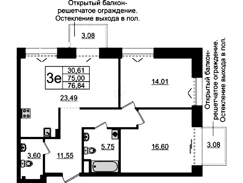 • Площадь75 м2