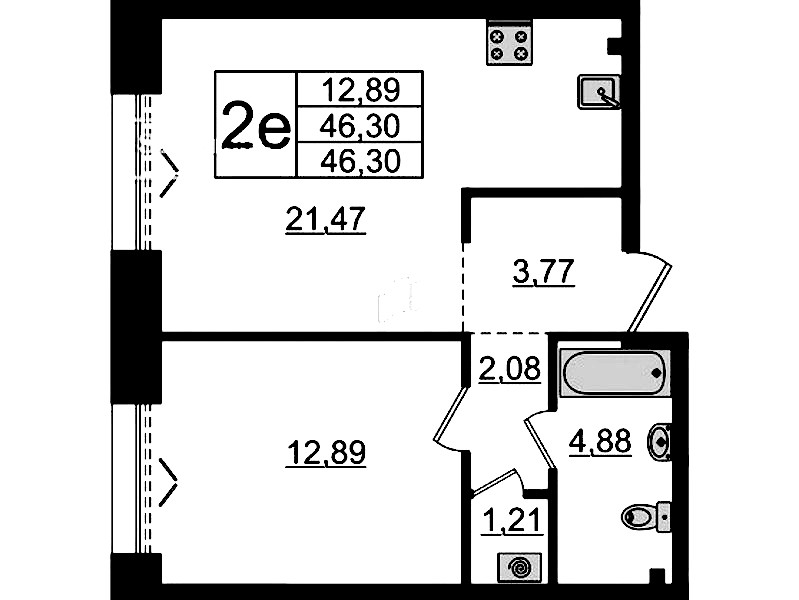 • Площадь46,3 м2