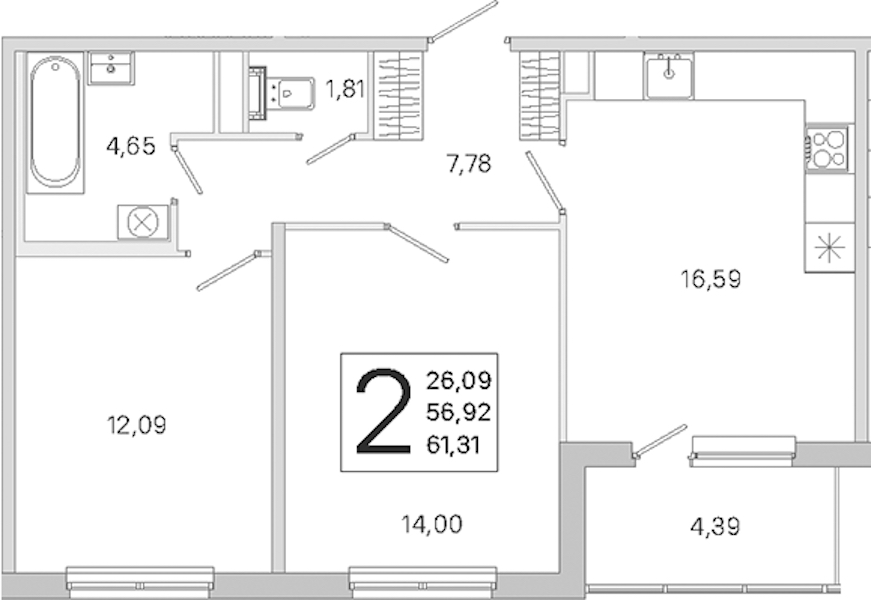 - Площадь56,92 м2