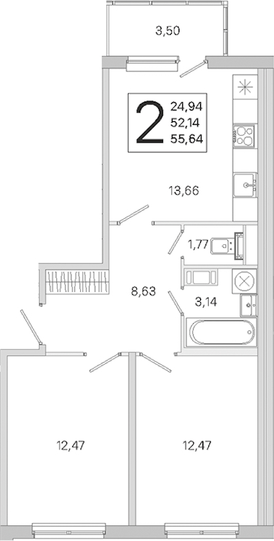 - Площадь52,14 м2