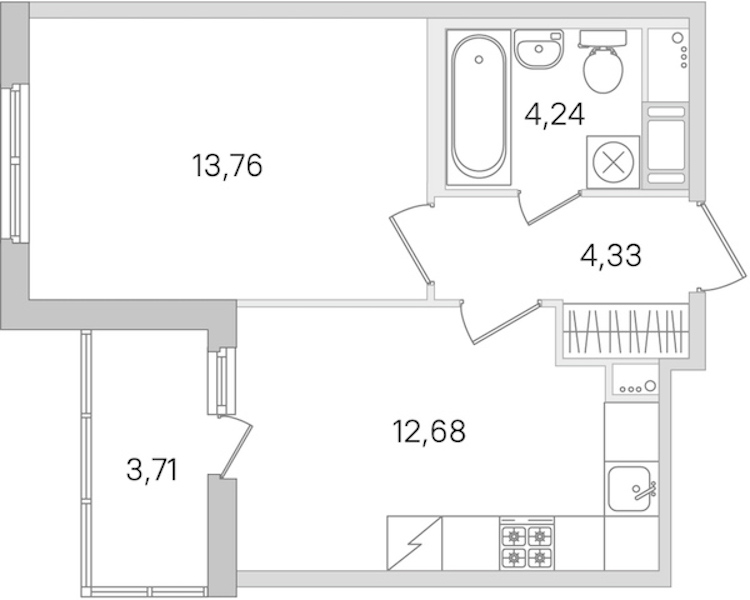 Однокомнатная квартира на 3-ем этаже 38,72 кв.м