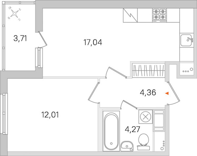 • Площадь кухни17,04 м2