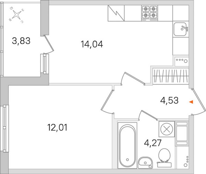 - Площадь кухни14,04 м2
