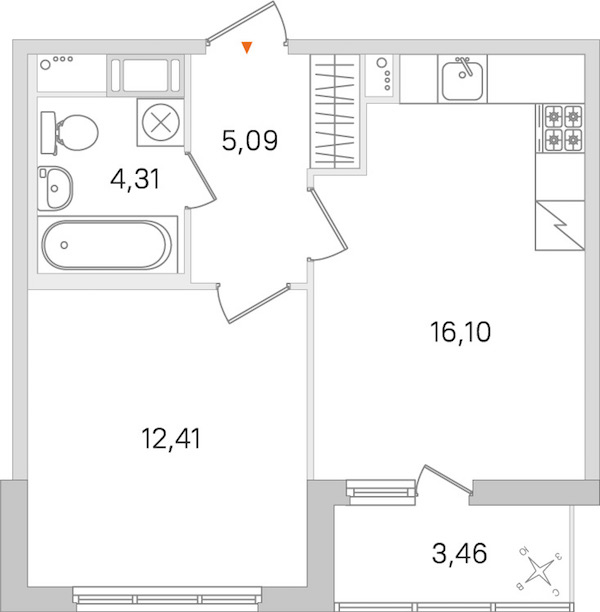 • Площадь кухни16,1 м2