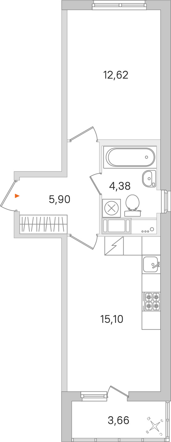 • Площадь кухни15,1 м2