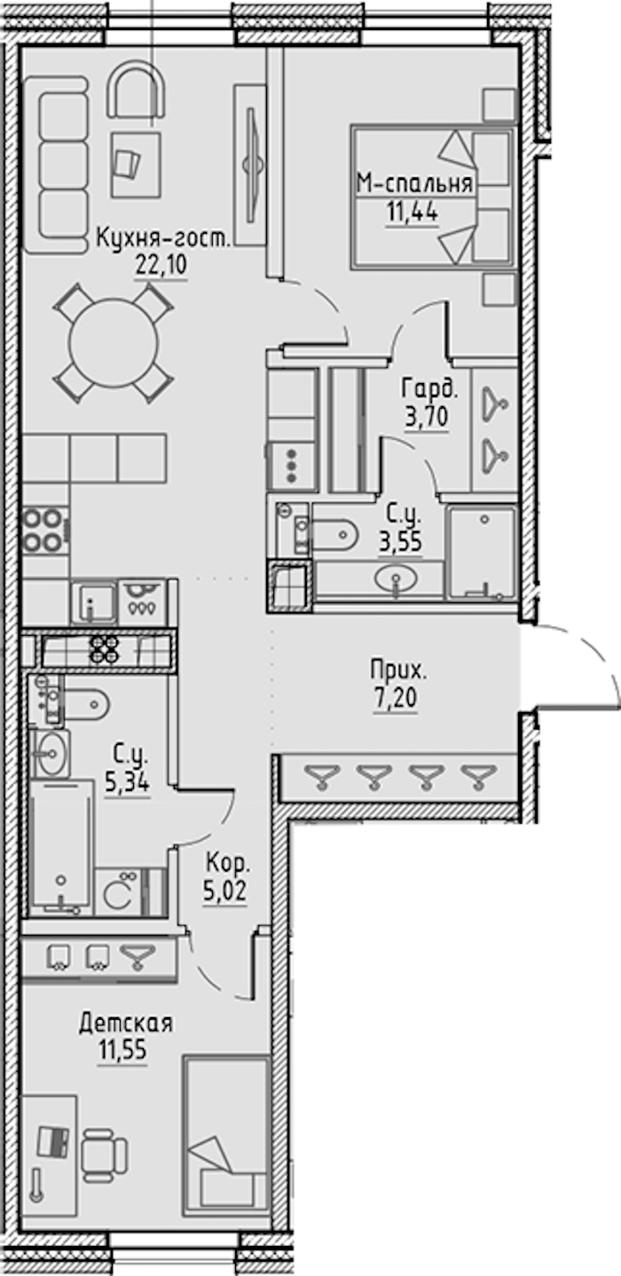 - Площадь кухни22,1 м2