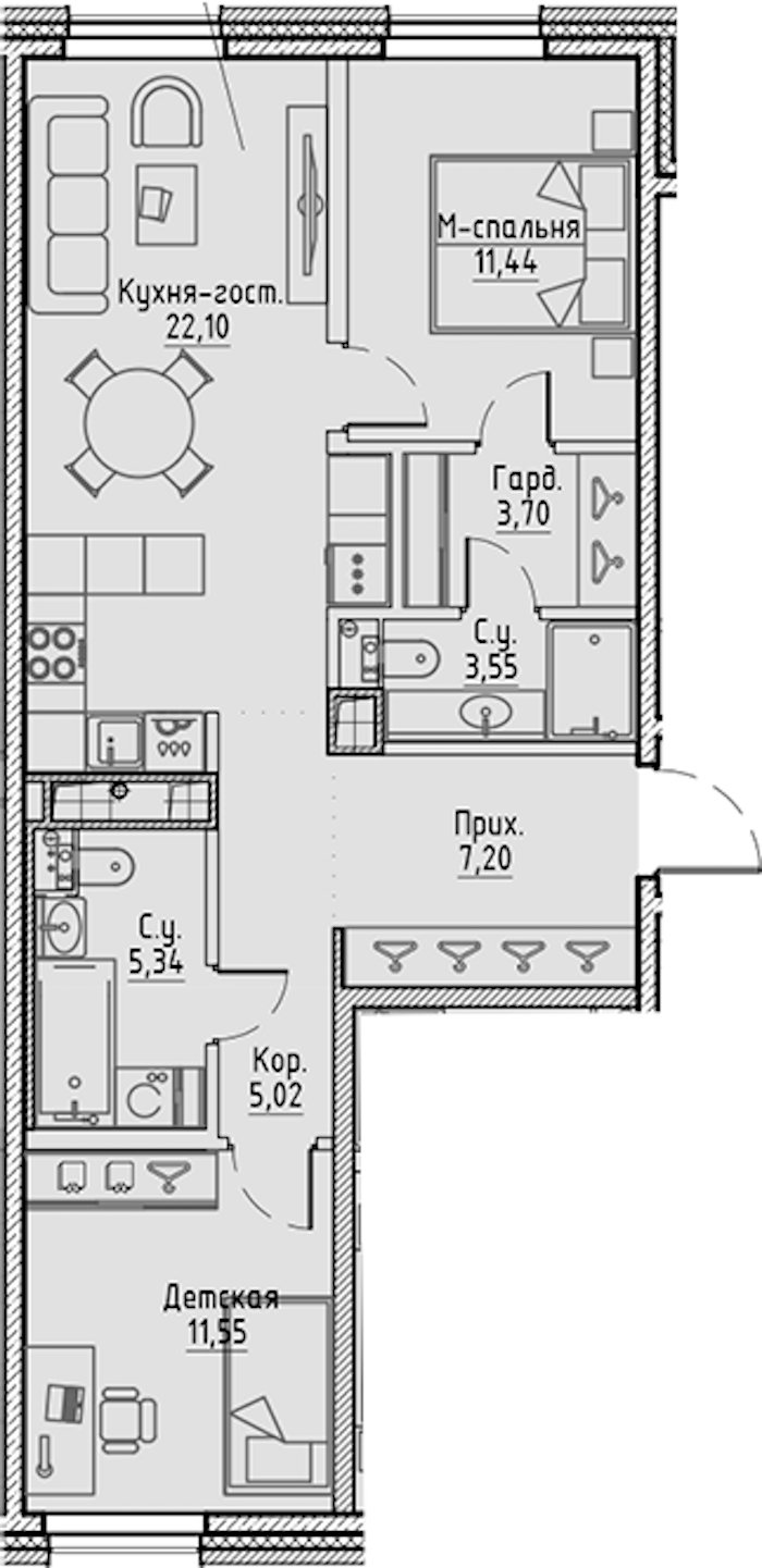 • Площадь кухни22,1 м2
