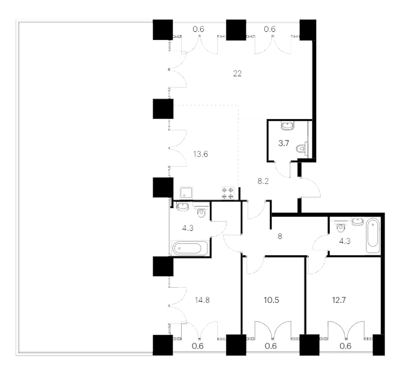 Трёхкомнатная квартира на 8-ом этаже 133,2 кв.м