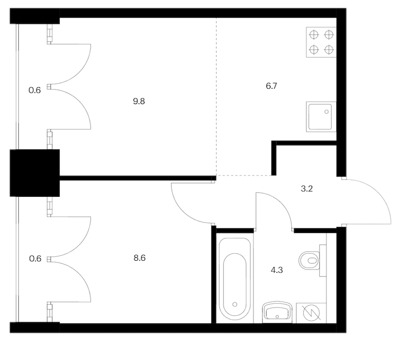 • Площадь33,8 м2
