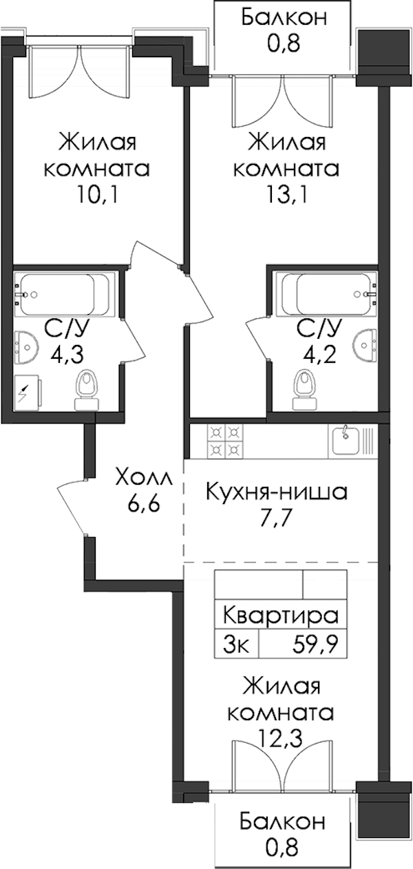 • Площадь59,9 м2