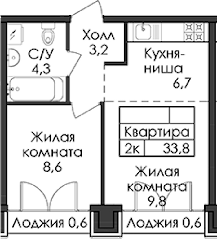 • Площадь33,8 м2