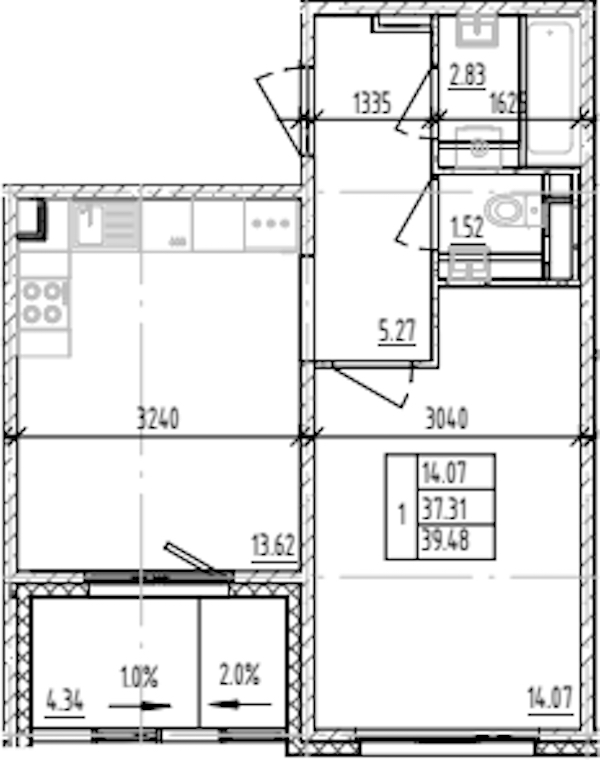 - Площадь39,48 м2