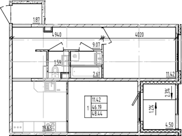 - Площадь48,44 м2