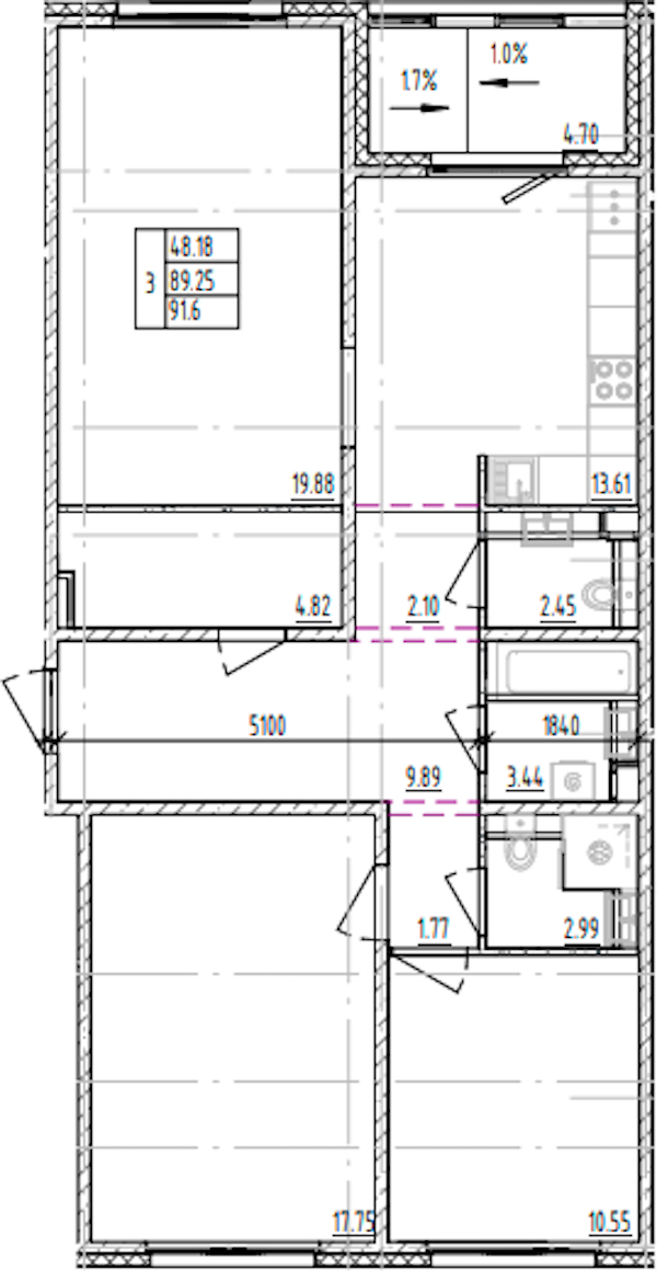 - Площадь91,6 м2