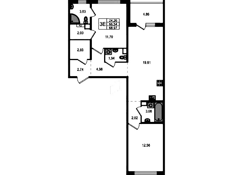 - Площадь68,97 м2