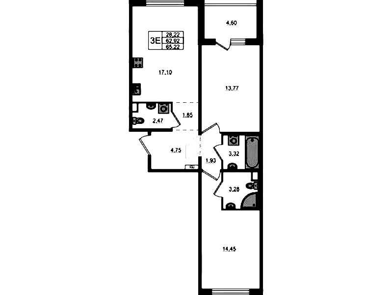 Двухкомнатная квартира на 2-ом этаже 65,22 кв.м