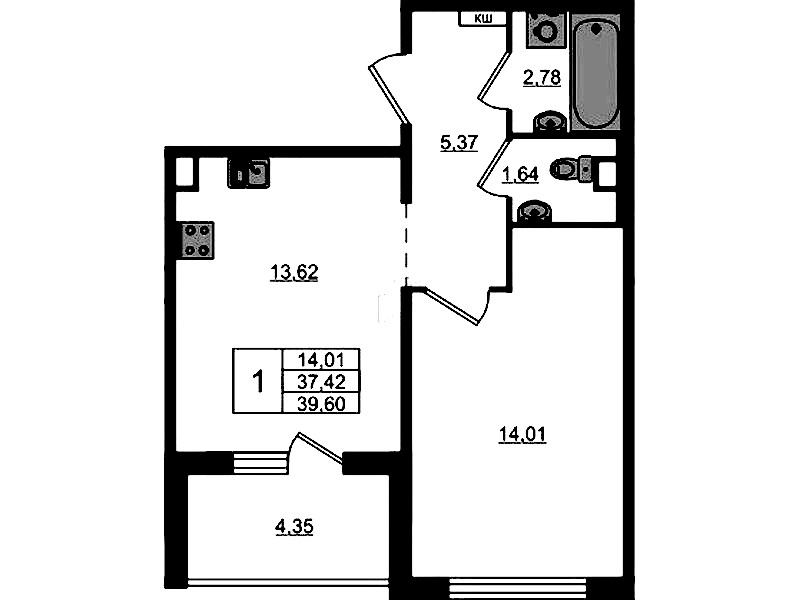 • Площадь39,6 м2