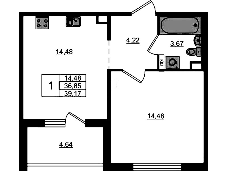 - Площадь кухни14,48 м2