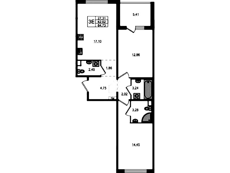 • Площадь64,73 м2