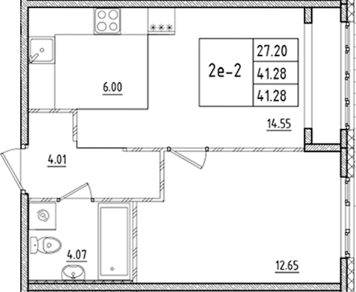 Однокомнатная квартира на 1-ом этаже 41,28 кв.м