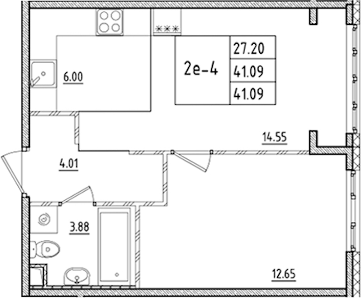 - Площадь41,09 м2