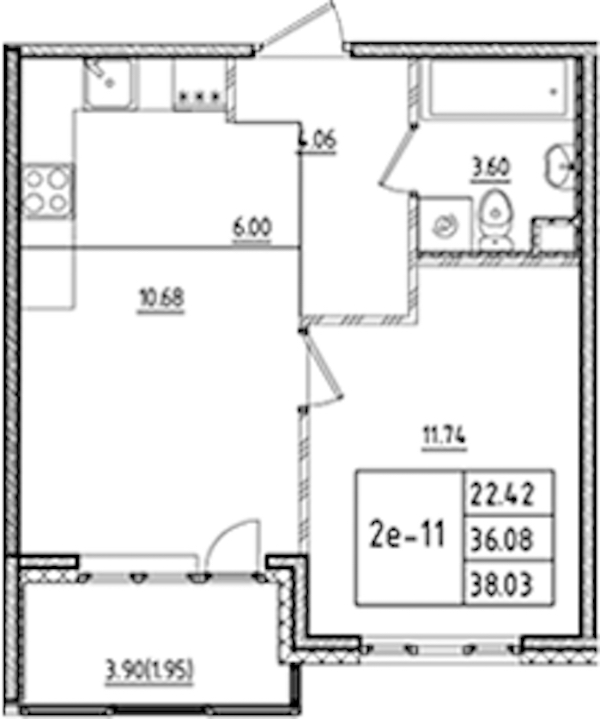 - Площадь38,03 м2