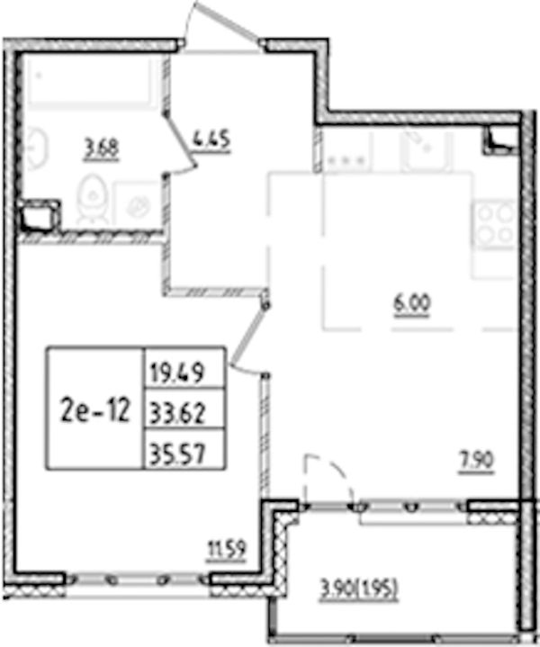 • Площадь35,57 м2