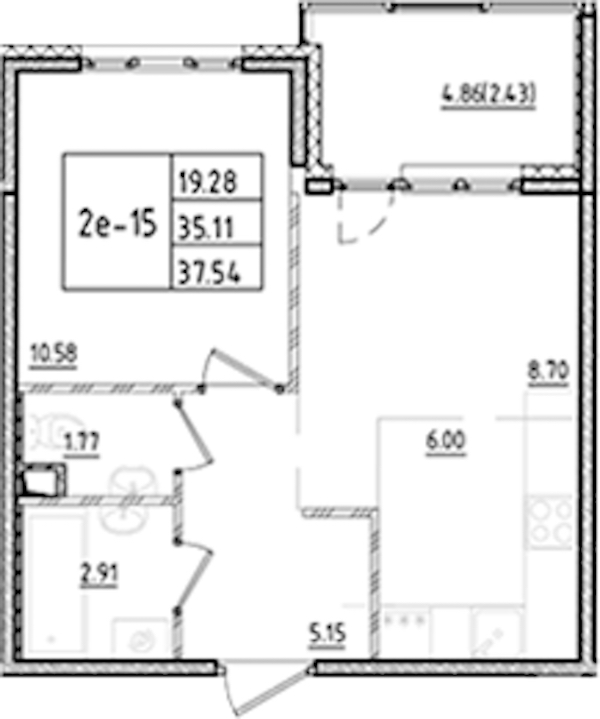 Однокомнатная квартира на 5-ом этаже 37,54 кв.м