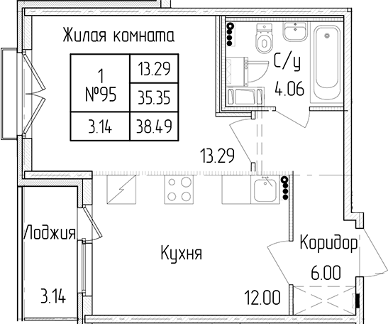 • Площадь35,35 м2