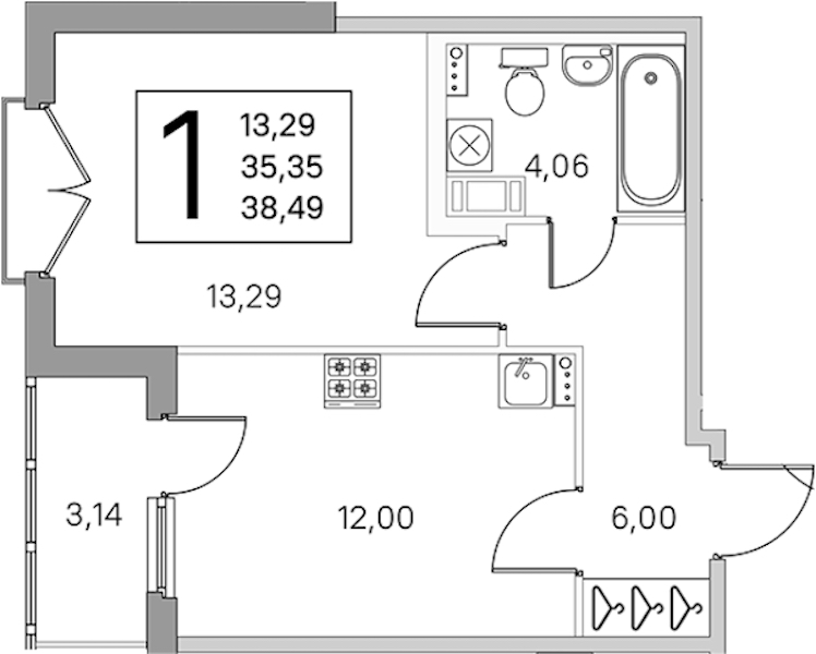 - Площадь36,29 м2