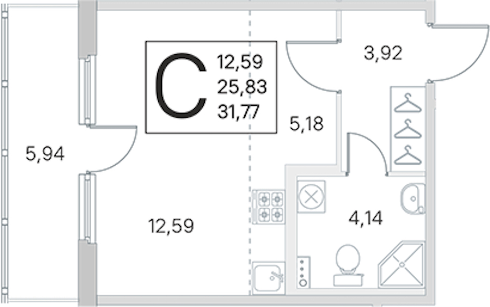 • Площадь25,83 м2