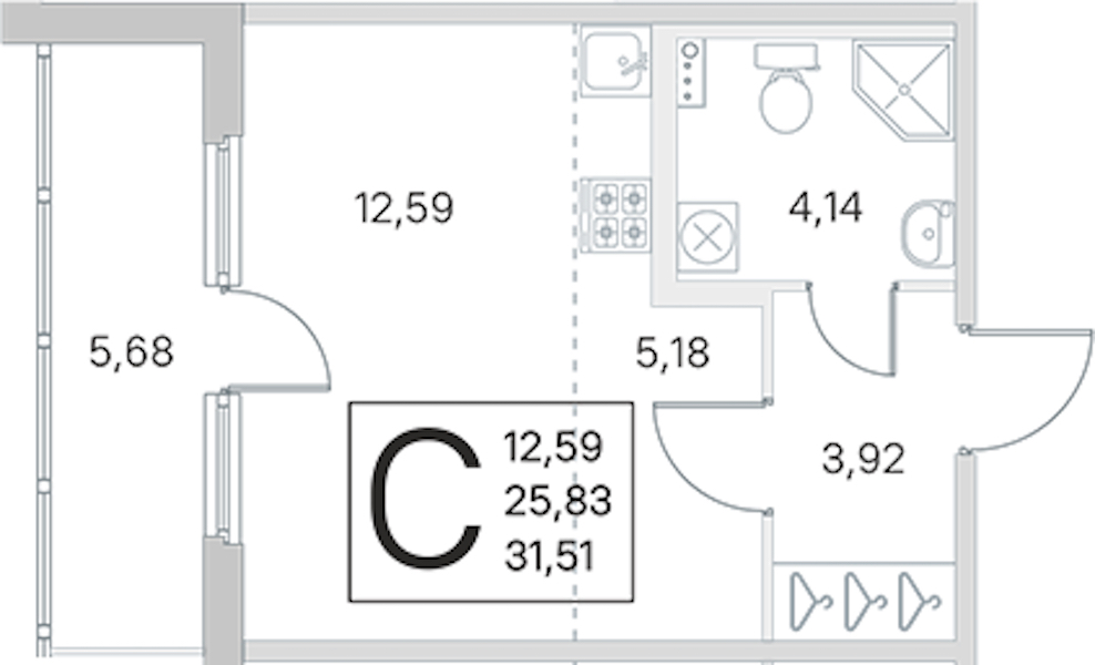 • Площадь25,83 м2