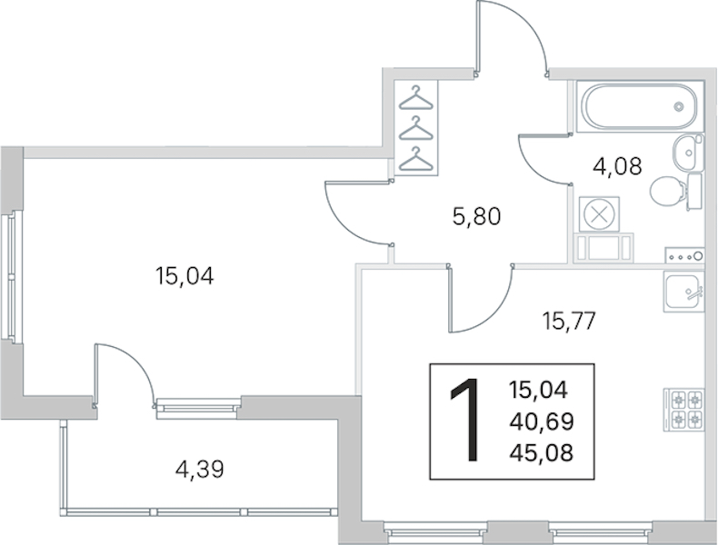- Площадь кухни15,77 м2