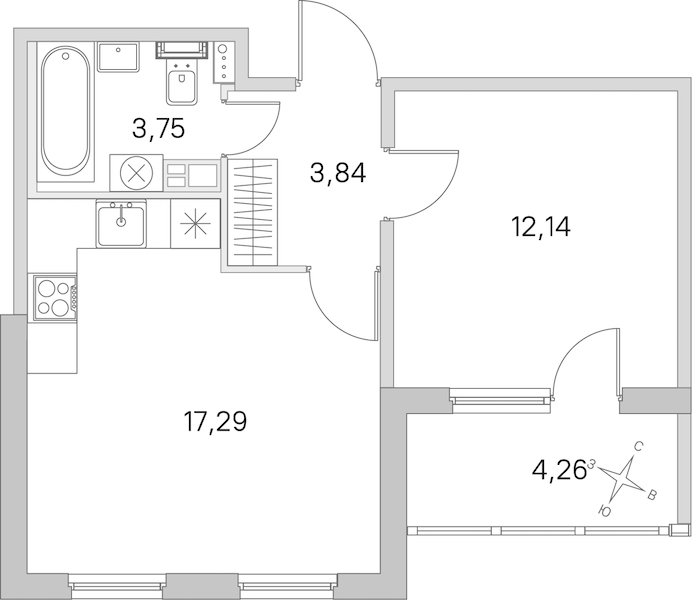 - Площадь кухни17,29 м2