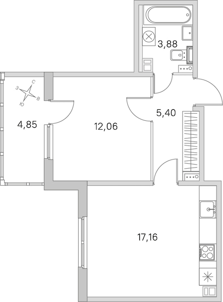 - Площадь кухни17,16 м2